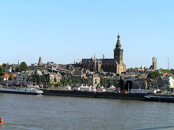 Nijmegen (German: Nimwegen, French: Nimègue) is a city in the east of the Netherlands in the province of Gelderland, 6 km (4 miles) west of the German border and 16 km (10 miles) south of Arnhem. Nijmegen and Maastricht are in competition for being the oldest city in the Netherlands, both date back to Roman times (ca. 100 AD). Until recently Nijmegen was situated solely on the south bank of the river Waal, the main branch of the Rhine, but since 2004 it is extending to the north of the Waal, the so-called Waalsprong. On 1/1/2009 the city had 162,000 inhabitants.