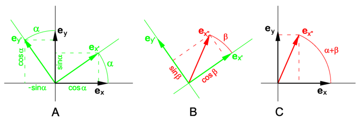 In Fig. 4C the doubly primed (red) vector ex " is given in terms of the unprimed (black) vectors: