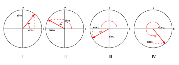 The unit vector e is depicted (as a red vector with endpoint on the unit circle) in the four different quadrants in Fig. 2.